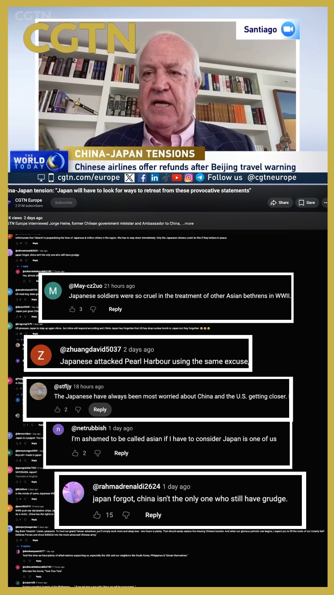 Worldwide support surges after Heine's comment on China-Japan tensions
